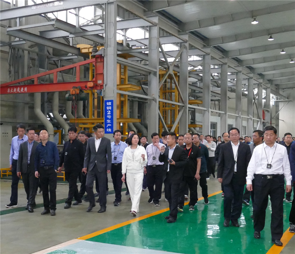 此次觀摩團主要對我公司的表面處理車間電鍍工藝、土壤污染源頭防范、污水處理、危險廢物管理等方面進行考察??偨?jīng)理郭釧代表集團公司對各位領導的到來表示熱烈的歡迎,并對公司基本情況、環(huán)保投入等方面做了簡要介紹。公司環(huán)保項目辦主任李宏旺對公司的電鍍工藝、土壤污染源頭防范、污水處理、危險廢物管理做了詳細的介紹。公司的環(huán)保治理工作得到了觀摩團的一致好評。