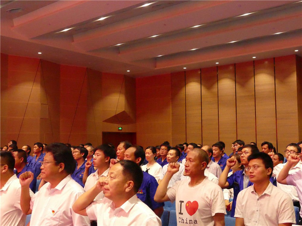大會(huì)在雄壯的國(guó)歌聲中拉開(kāi)序幕。首先公司黨委委員、副總經(jīng)理郭日倉(cāng)作了《黨委工作報(bào)告》。報(bào)告總結(jié)了過(guò)去一年來(lái)的黨建工作,指出了黨建工作存在的不足,并提出了下一步工作的努力方向。公司黨委委員、鑄鍛公司副總經(jīng)理曹慶平宣讀《關(guān)于表彰2019年度優(yōu)秀共產(chǎn)黨員的決定》。大會(huì)為2019年度在公司各條戰(zhàn)線涌現(xiàn)出的10名優(yōu)秀黨員頒發(fā)榮譽(yù)證書;接著舉行新黨員入黨宣誓和老黨員重溫入黨誓詞儀式,全體黨員舉起右手,握緊拳頭,面向黨旗,莊嚴(yán)宣誓“我志愿加入中國(guó)共產(chǎn)黨,擁護(hù)黨的綱領(lǐng),遵守黨的章程……”,錚錚誓詞響徹會(huì)議室。