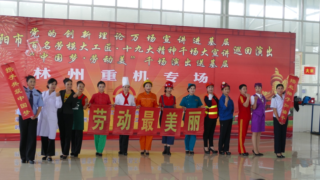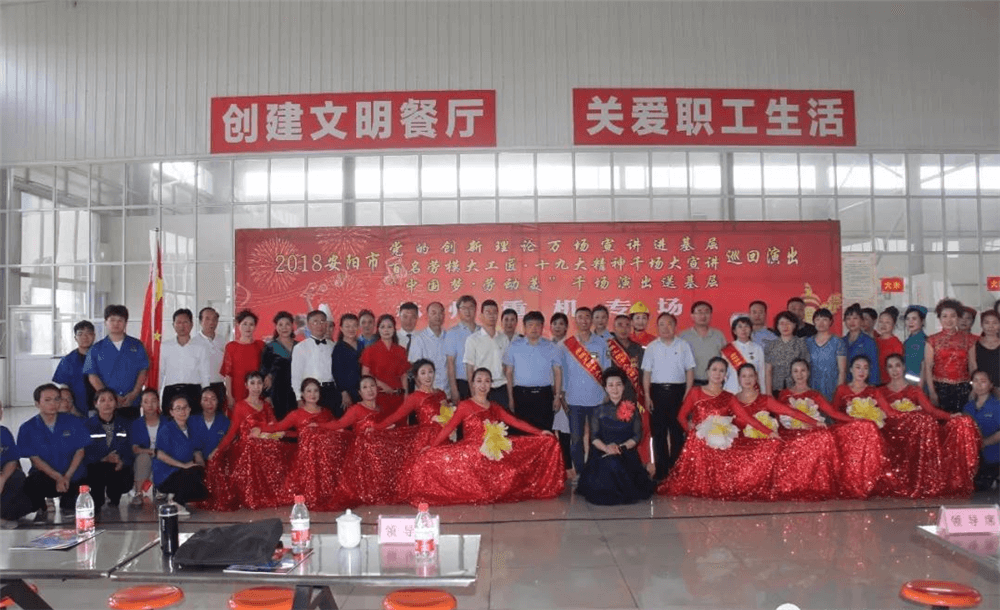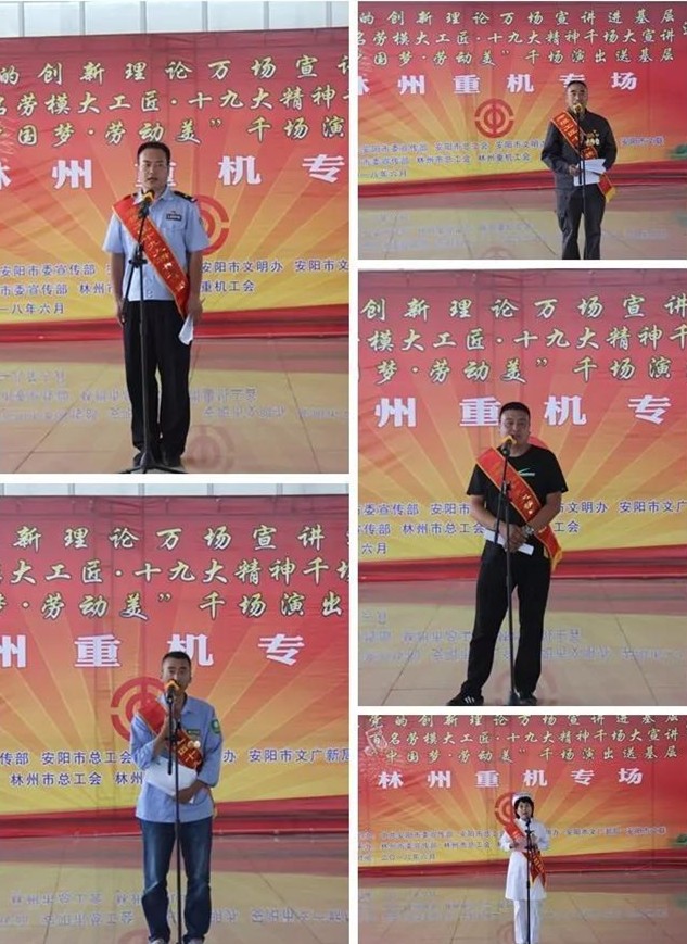 6月6日下午,安陽(yáng)市黨的創(chuàng)新理論萬場(chǎng)宣講進(jìn)基層、百名勞模大工匠?十九大精神千場(chǎng)大宣講暨“中國(guó)夢(mèng) 勞動(dòng)美”千場(chǎng)演出送基層巡回演出活動(dòng)走進(jìn)林州重機(jī)。河南省委宣傳部副部長(zhǎng)尹書博,省委宣傳部理論處副處長(zhǎng)楊小強(qiáng),省委宣傳部理論教育講師團(tuán)副團(tuán)長(zhǎng)趙琳,安陽(yáng)市委宣傳部副部長(zhǎng)冀曉東,安陽(yáng)市委宣傳部理論科長(zhǎng)龍晨曦,安陽(yáng)市總工會(huì)宣教部部長(zhǎng)張艾敏,林州市委常委、宣傳部長(zhǎng)王獻(xiàn)青,林州市總工會(huì)主席栗旺生,副主席張曉云, 公司黨委副書記、副總經(jīng)理趙正斌,黨委委員、工會(huì)主席路建存及職工代表300余人等出席活動(dòng)。