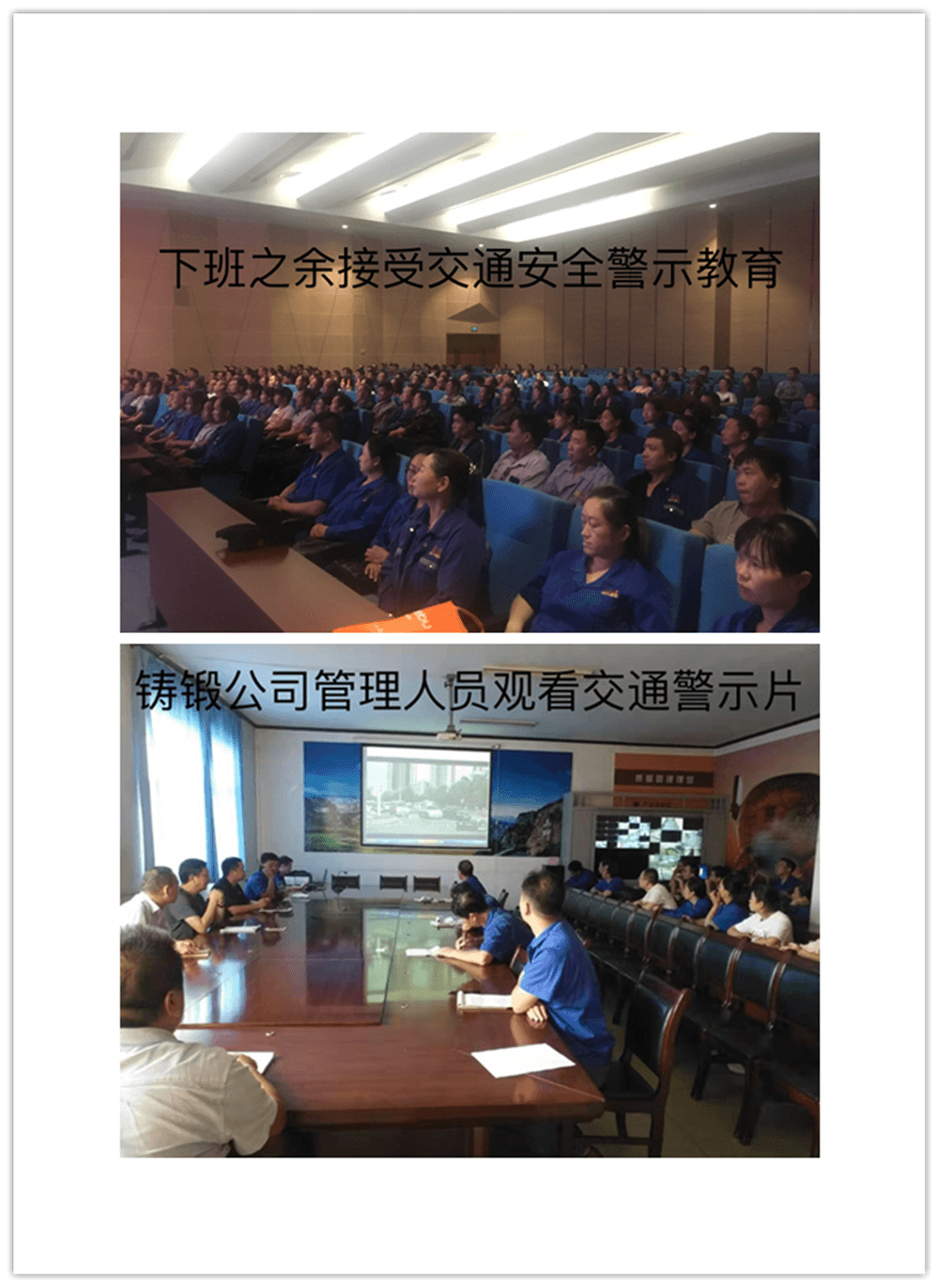 開展警示片宣傳教育活動。集團(tuán)公司按單位分三次組織1000余名員工觀看交通事故警示教育片,集團(tuán)公司子公司林鋼、鑄鍛也積極按照方案要求組織收看教育片,同時(shí)各單位還利用本部門的微信工作群進(jìn)行轉(zhuǎn)發(fā)收看,達(dá)到警示教育全面覆蓋之目的。