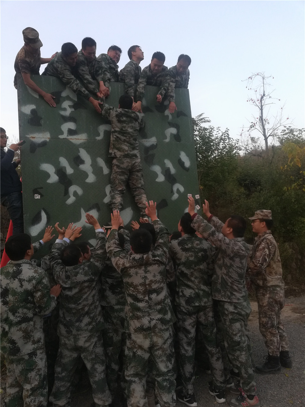 源起于西點軍校的《畢業(yè)墻》項目,是體現(xiàn)團隊凝聚力和合作精神的經(jīng)典訓(xùn)練項目。在這個項目中,經(jīng)過周密的安排,所有隊員僅用不到8分鐘的時間翻閱了4.2米的高墻,再次見證了團隊的力量。