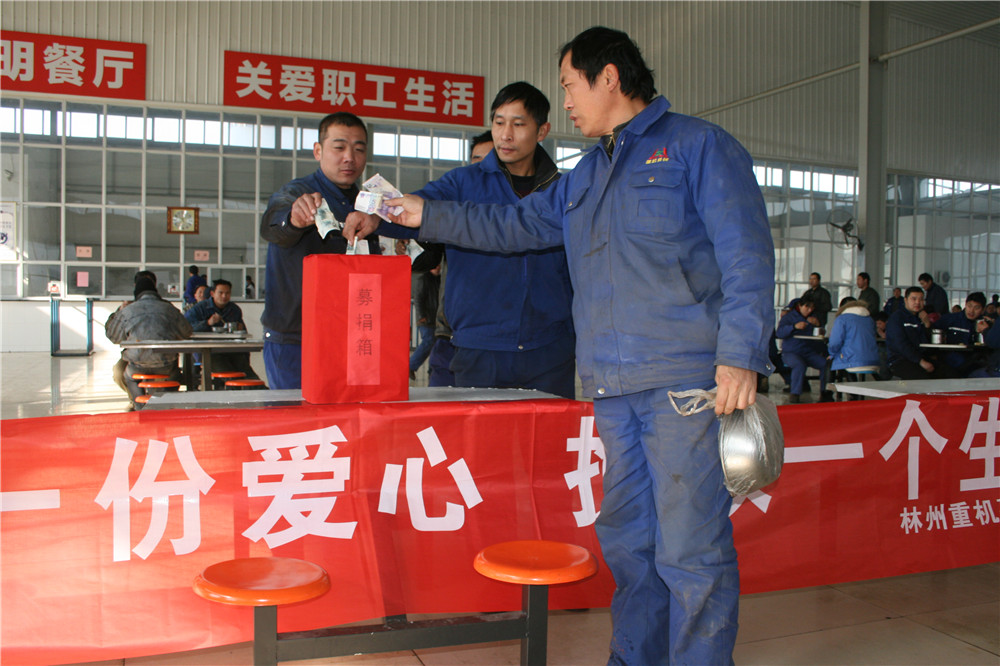 11日上午,公司工會立即發(fā)出募捐倡議書。下午二點在公司辦公樓前舉行了募捐儀式并現(xiàn)場募集。公司總經(jīng)理郭釧代表公司捐款10000元,公司董事韓錄云代表其家人捐款10000元,其他公司領(lǐng)導(dǎo)及機(jī)關(guān)部室、分子公司管理人員紛紛捐款,特別是與郭保紅素不相識、在我公司施工的深圳市朗奧潔凈科技股份有限公司捐款3000元,河南派普建工集團(tuán)有限公司捐款1000元,供應(yīng)商延津縣熱處理廠張東福看到募捐活動也捐款500元,短短不到半個小時募集捐款近4萬元。更值得一提的是原林州重機(jī)集團(tuán)員工張國華,也是腎病患者,曾經(jīng)得到過林州重機(jī)捐款資助的他看到朋友圈的消息后,也委托朋友捐款10元,他說:我也是一名尿毒癥患者,我也曾經(jīng)得到過林州重機(jī)的捐助,現(xiàn)在我雖然還在治療之中,但我也要盡我一點心意。多么樸實的話語,多么善良的員工,一方有難八方支援,真正體現(xiàn)出了我們林州重機(jī)是一個互助友愛的大家庭。12日中午,公司工會又在職工食堂舉行第二次募捐活動,累計募捐善款 42337元。