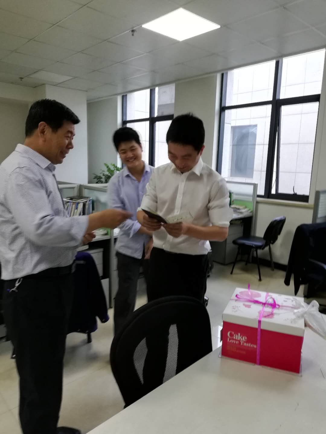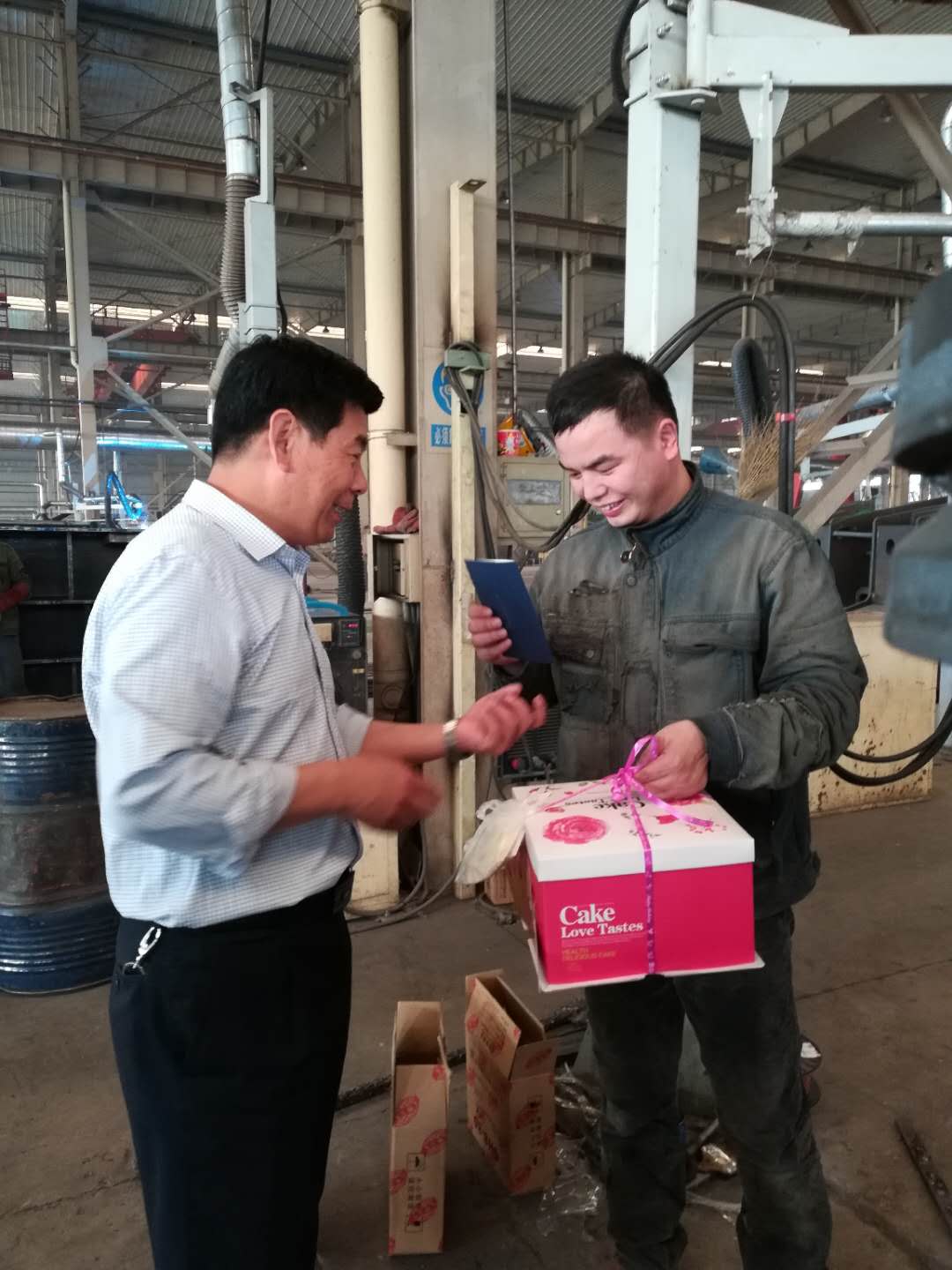 5月10日上午8時許,公司工會主席路建存攜帶生日蛋糕和生日賀卡走進車間,親自將生日禮物送到當(dāng)天過生日的員工手中,并代表公司董事長、總經(jīng)理表示生日祝賀。當(dāng)路主席把生日蛋糕送到員工手中時,他們感到非常驚訝,有的員工本人都不記得今天是自己生日,而公司把生日禮物送到了手中,員工們激動的說:非常感謝公司領(lǐng)導(dǎo)的關(guān)懷。